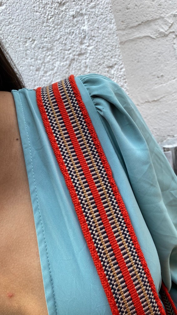 GASA PALETEADA MULTI COLOR, NARANJA OSCURO, AZUL TURQUI, BEIGE Y CAQUI.